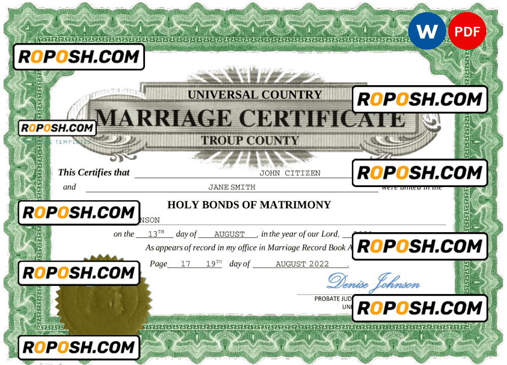 Choose roposh and appreciate the pleasure of a beautiful, authentic-looking Marriage Certificate you can print at home or at your local print shop for a polished presentation.