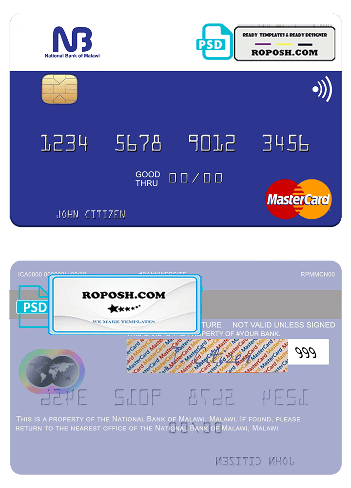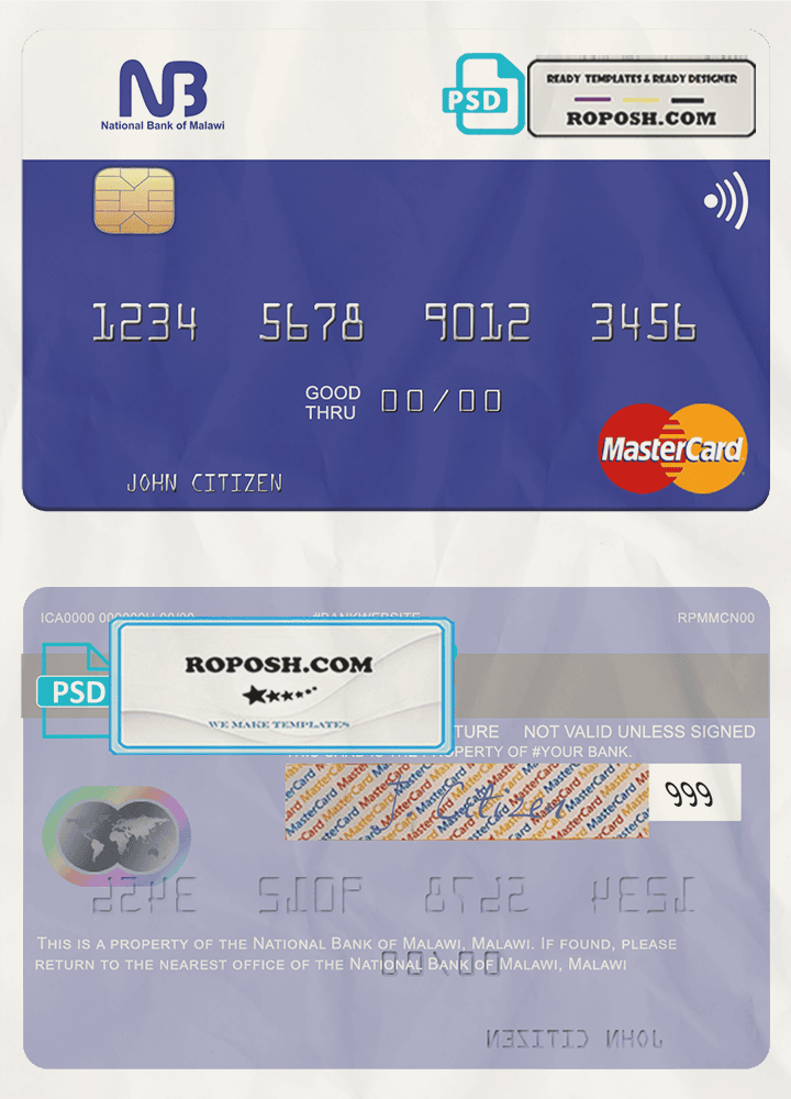 This Malawi National Bank mastercard credit card PSD Template is perfect for a variety of uses, such as removing PayPal account limitations, verifying Facebook accounts, and more. You can even use it to create copies of your credit card for novelty documents. We have a variety of other templates available, including passport templates, ID card templates, bank statement templates, and more.