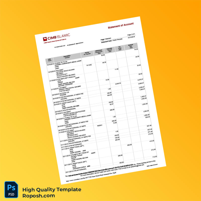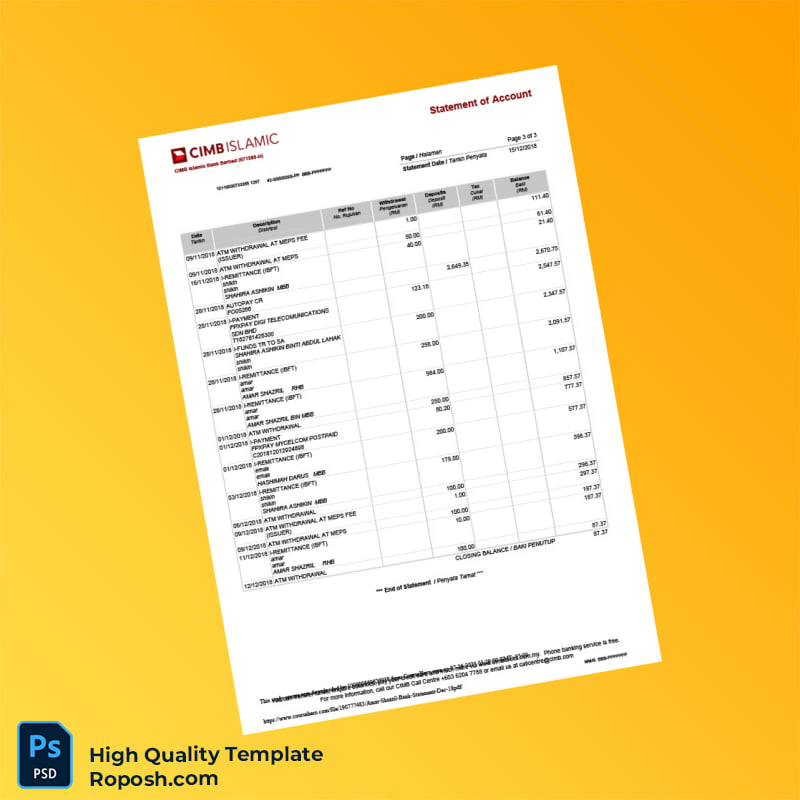 Malaysia Bank Statement Template in Word and PDF formats 3 page
