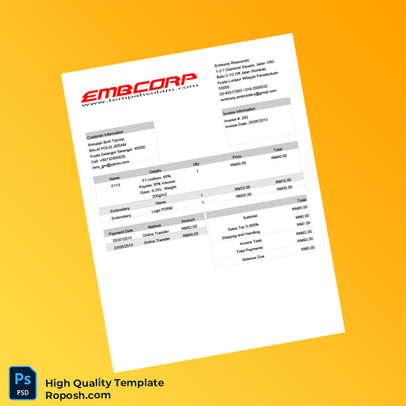 Upgrade your billing workflow with the Malaysia Embcorp Resources Invoice Template in Word and PDF formats. Effortlessly customizable, print-ready, and instantly downloadable, this template is your smart choice for professional, consistent invoicing. Purchase now and streamline your financial documentation with ease.