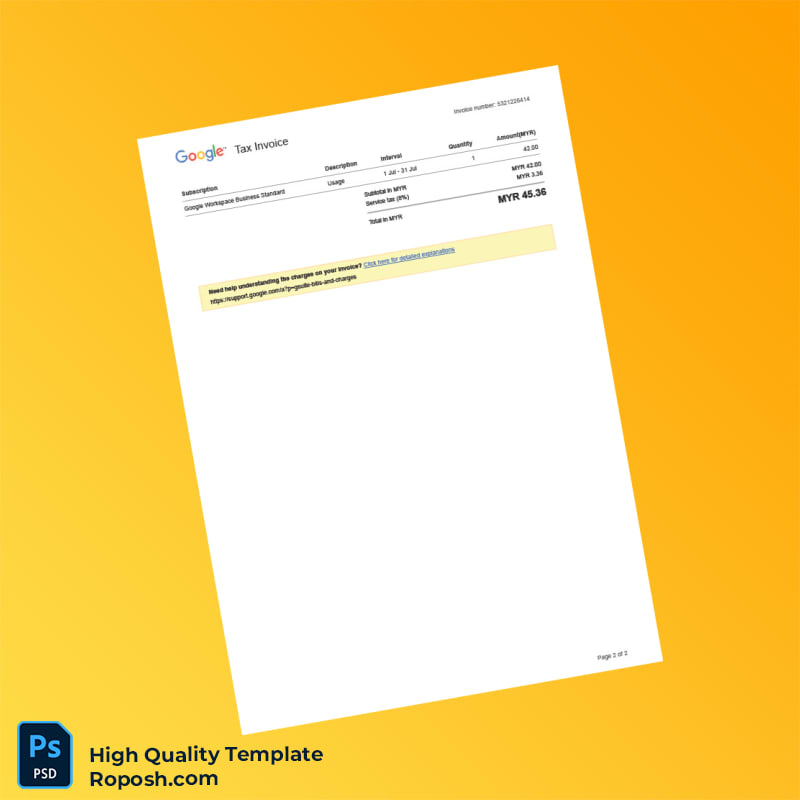 Malaysia Google Workspace Editable Tax Invoice Template in Word and PDF Formats