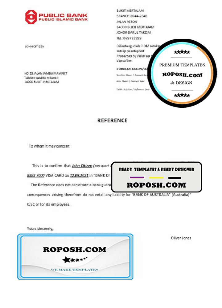 Malaysia Public Bank bank account closure reference letter template in Word and PDF format offer high-quality customizable bank reference form template in PSD and Word format, allowing you to easily fill in your personal details and make them look authentic. Our templates are perfect for online account verification, research, presentation, or work.