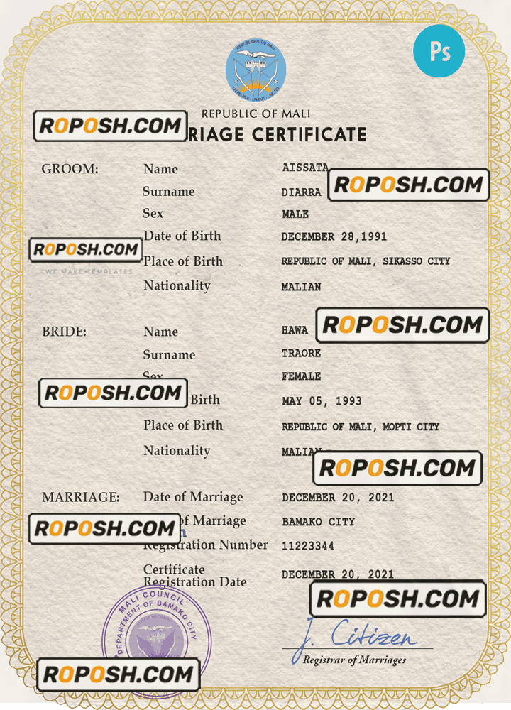– Join our growing list of satisfied customers today by getting your hands on our blank Mali marriage paper certificates.