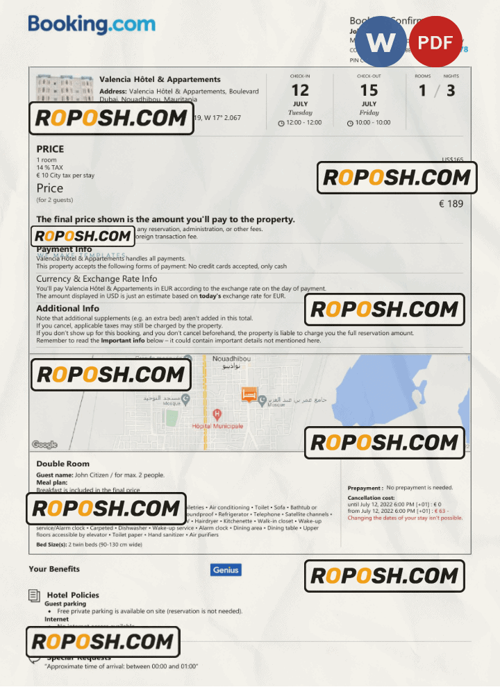 With its user-friendly design and flexible editing capabilities, this editable Mauritania hotel booking confirmation hotel, room, house, and Airbnb reservation proof is the perfect choice for anyone looking to create a professional-quality editable hotel accommodation reception. So why wait?