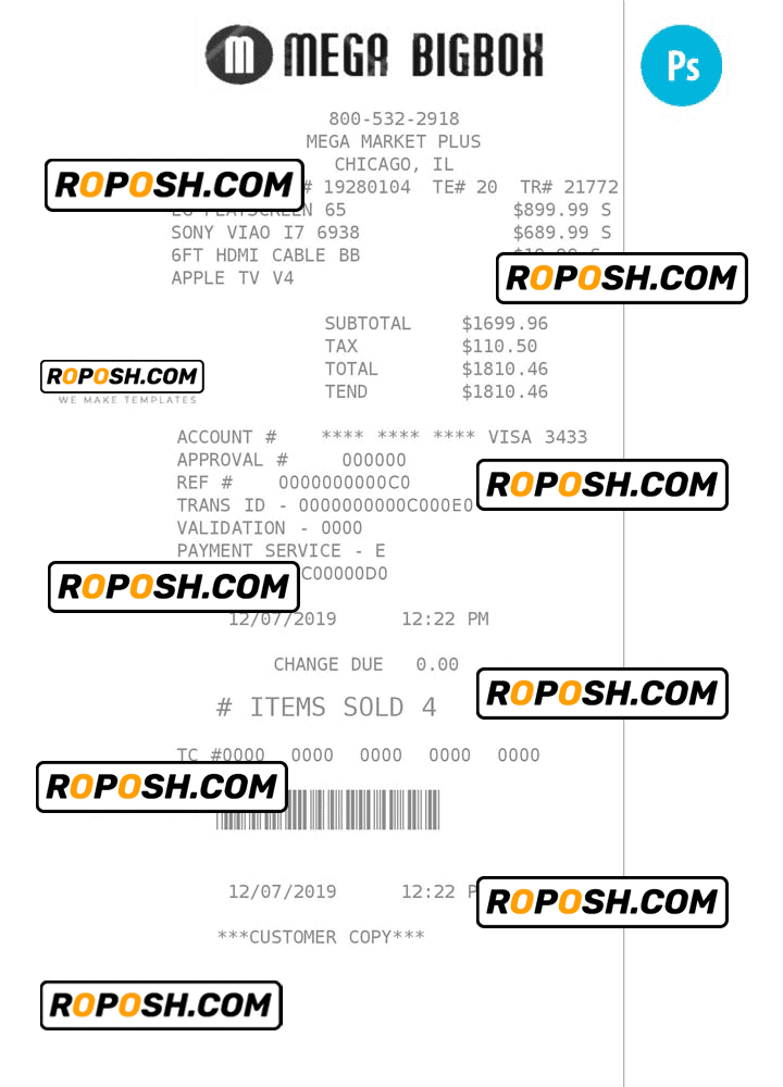 - Versatile: Our shop receipt PSD Template is suitable for a variety of verifications, and to prove your purchase.