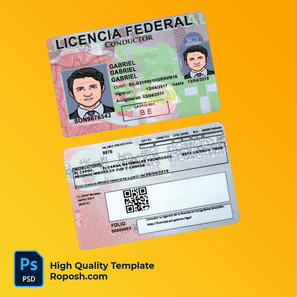 Many people require a Mexican driver’s license template for different professional and personal reasons. A well-designed, high-resolution PSD ensures:
