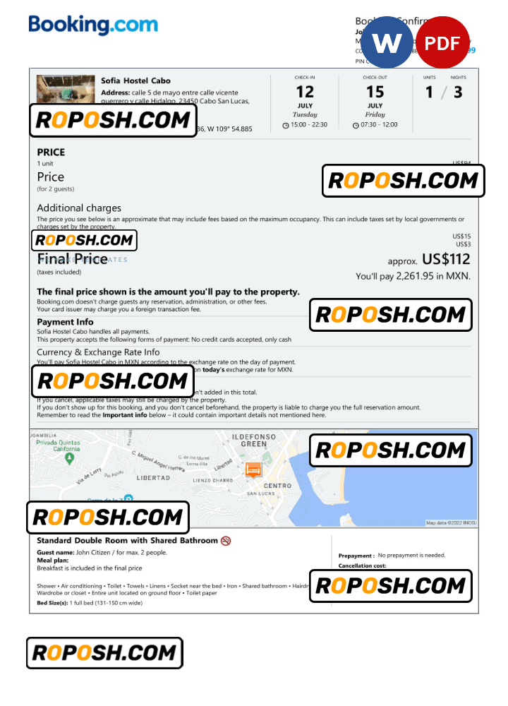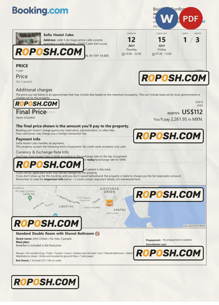 With its user-friendly design and flexible editing capabilities, this editable Mexico hotel booking confirmation hotel, room, house, and Airbnb reservation proof is the perfect choice for anyone looking to create a professional-quality editable hotel accommodation reception. So why wait?