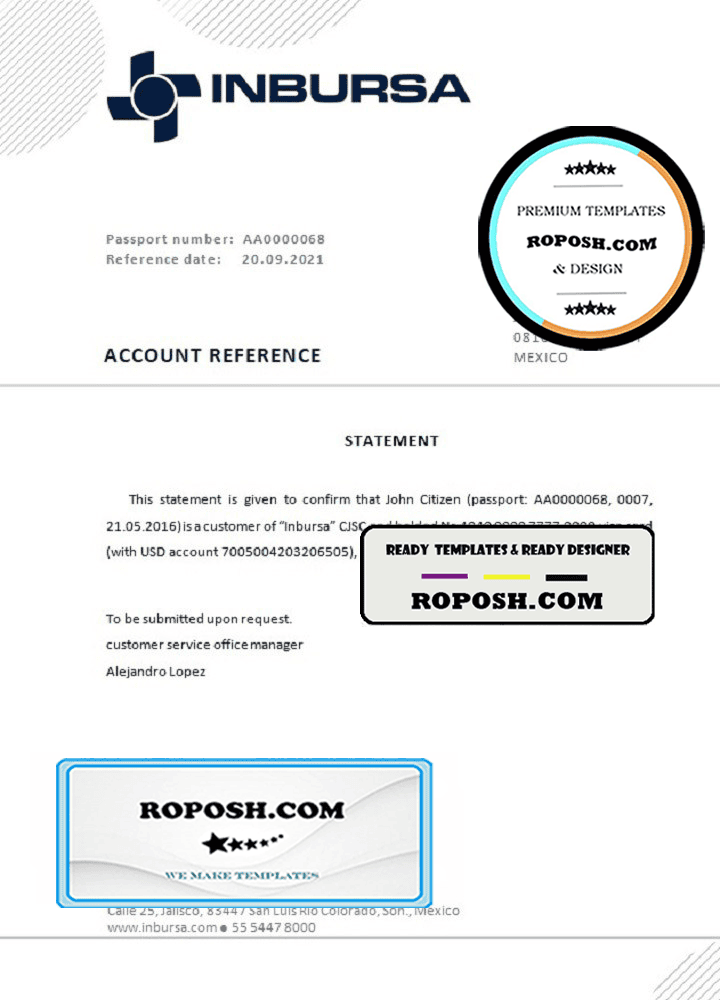 Mexico Inbursa bank account closure reference letter template in Word and PDF format