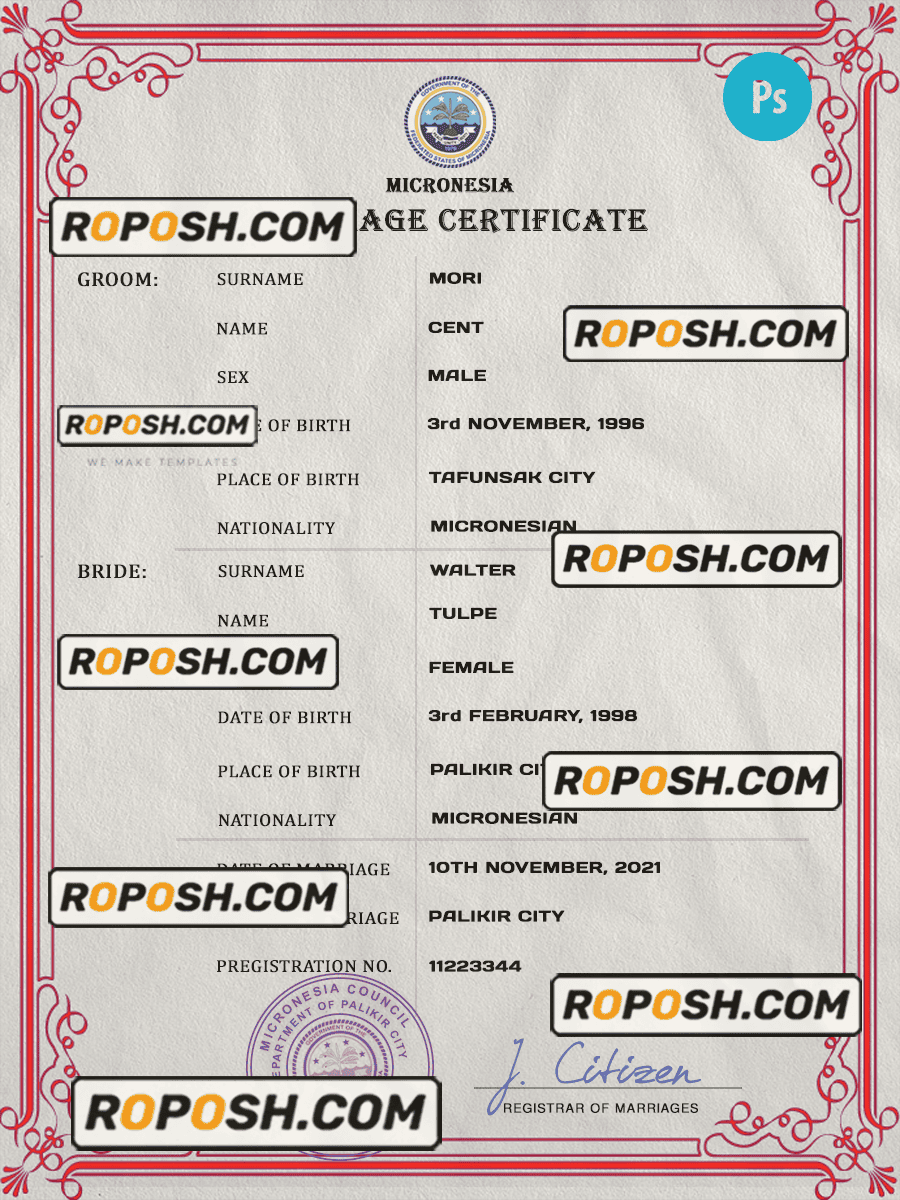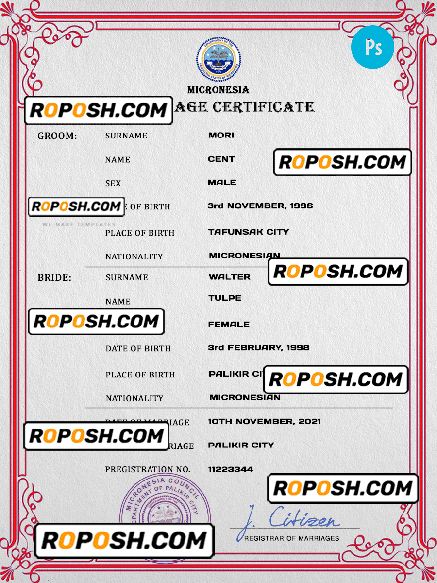 Be the first to review “Micronesia marriage certificate PSD template, completely editable”