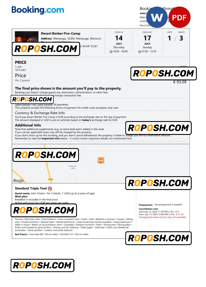 With its user-friendly design and flexible editing capabilities, this editable Morocco hotel booking confirmation hotel, room, house, and Airbnb reservation proof is the perfect choice for anyone looking to create a professional-quality editable hotel accommodation reception. So why wait?