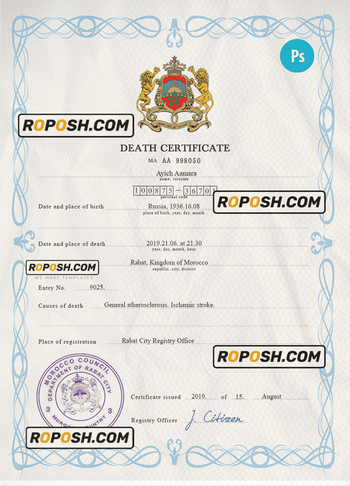 Be the first to review “Morocco vital record death certificate PSD template, completely editable”