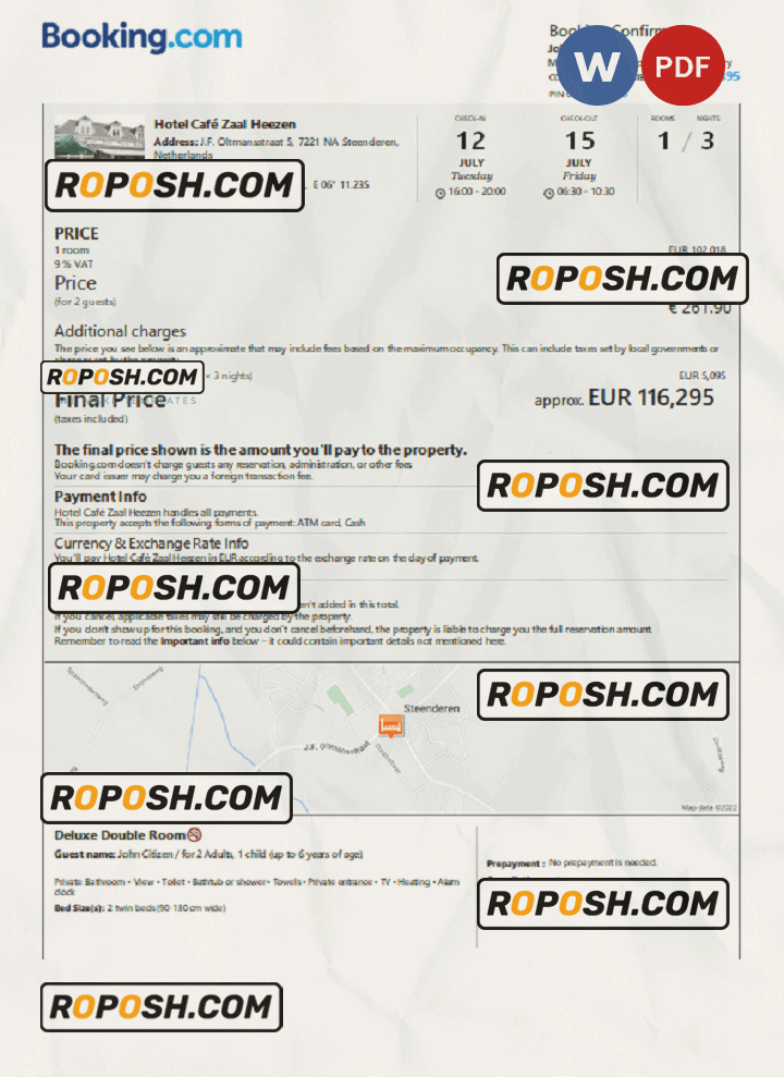 With its user-friendly design and flexible editing capabilities, this editable Netherlands hotel booking confirmation hotel, room, house, and Airbnb reservation proof is the perfect choice for anyone looking to create a professional-quality editable hotel accommodation reception. So why wait?