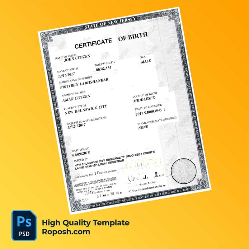 - Visit the New Jersey Birth Certificate Template page on roposh.com