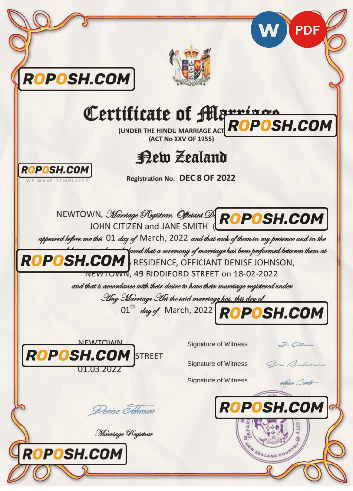 Get your printable New Zealand marriage certificate templates now and join our growing list of satisfied customers!