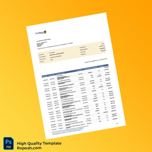 Nigeria FirstBank Statement Template in Word and PDF Formats