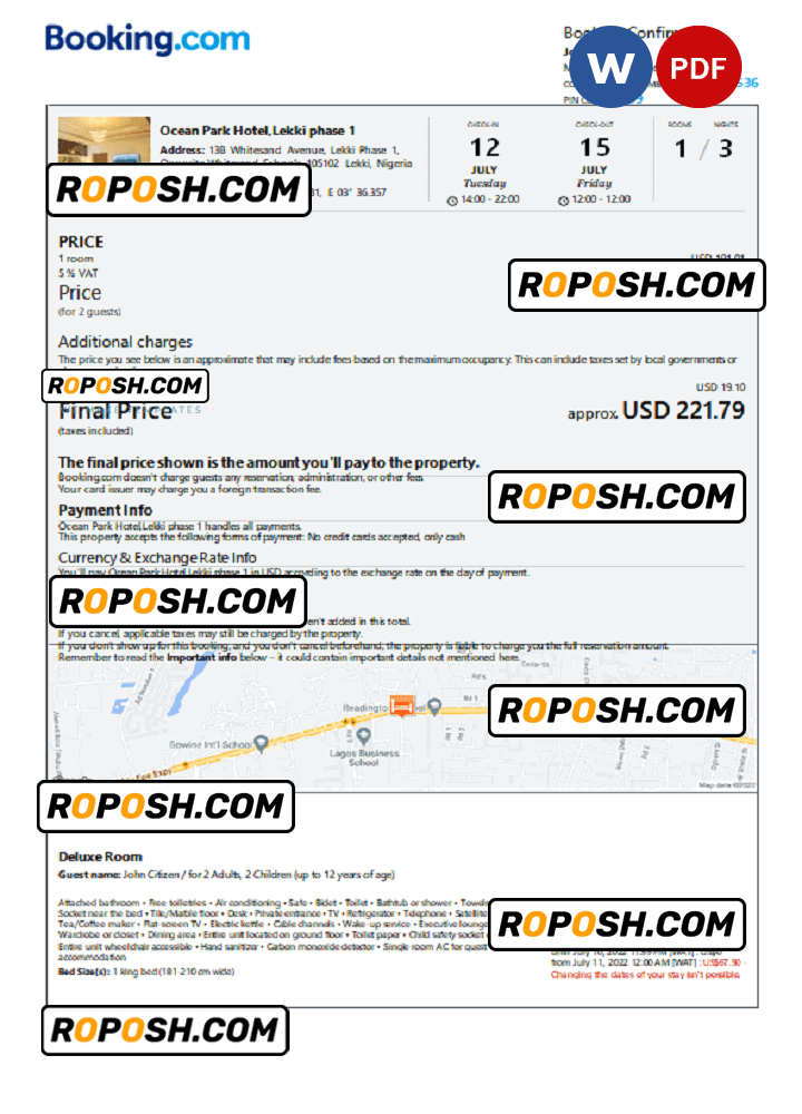 With its user-friendly design and flexible editing capabilities, this editable Nigeria hotel booking confirmation hotel, room, house, and Airbnb reservation proof is the perfect choice for anyone looking to create a professional-quality editable hotel accommodation reception. So why wait?