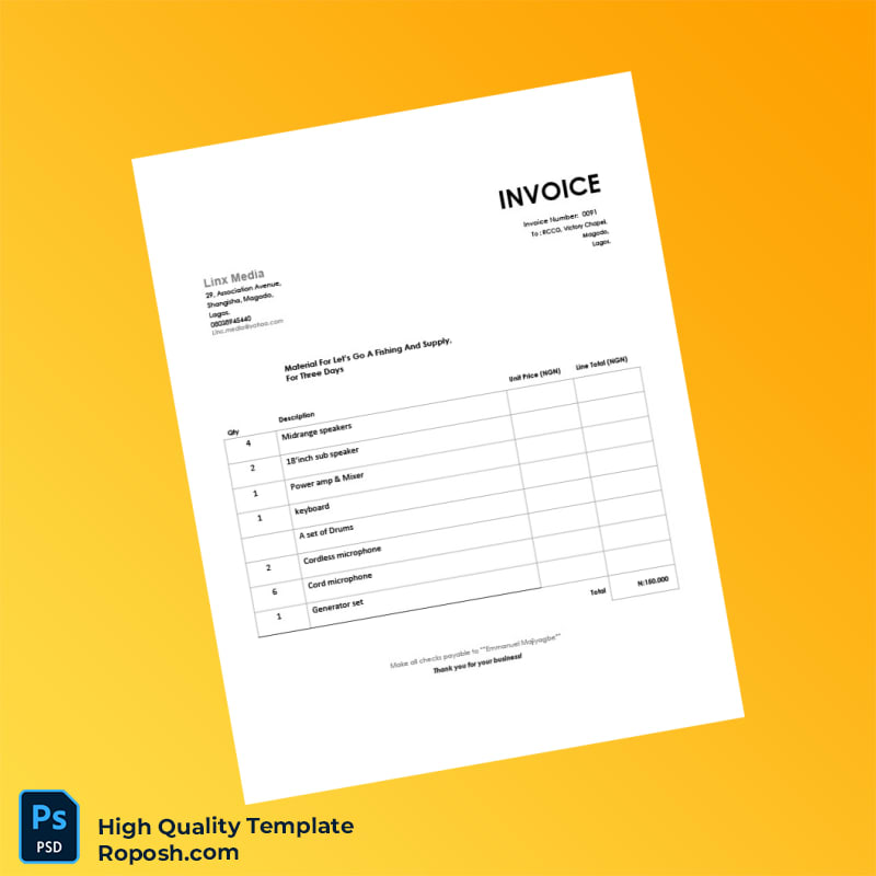Stop risking lost or complicated invoicing. Empower your business with the Nigeria Linx Media Invoice Template—designed for quick, clear, and professional billing. Explore more efficient document solutions in our Editable Invoice Word And Pdf Template category and complement your setup by reviewing our USA The Home Depot Invoice Template and High Quality India Demo Pharma Distributor Invoice. Download your template now and experience hassle-free invoicing that truly supports your business growth.