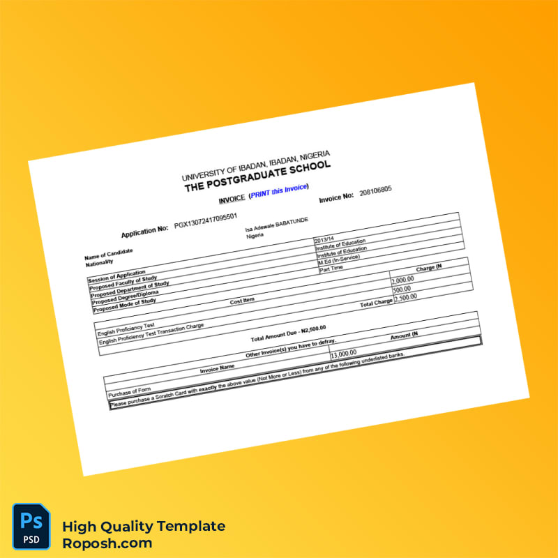 Nigeria University of Ibadan Invoice Template in Word and PDF Formats
