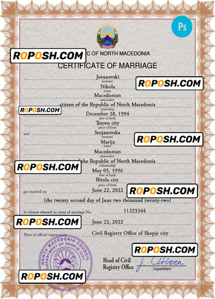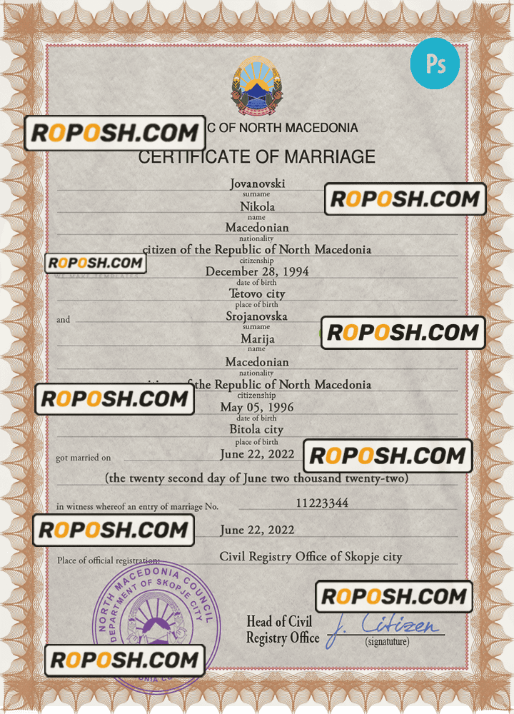 – Join our growing list of satisfied customers today by getting your hands on our blank North Macedonia marriage paper certificates.