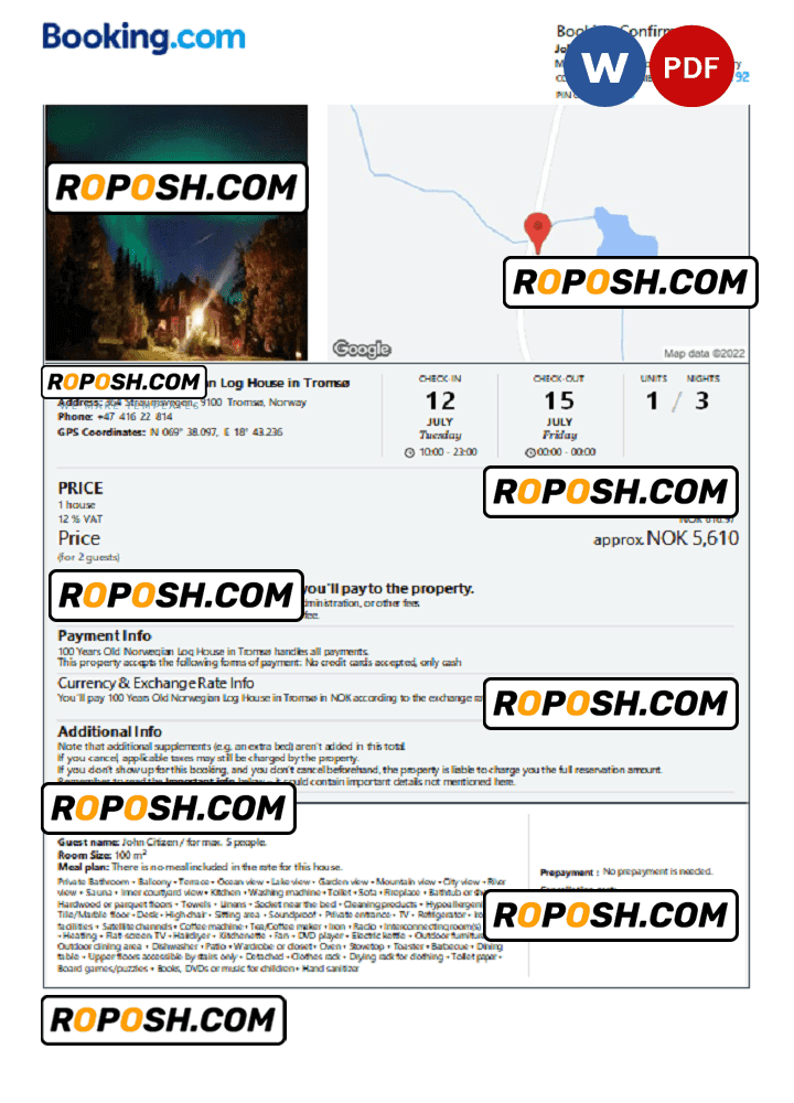 Elevate your hotel and Airbnb booking with this high-quality, fully editable Norway hotel booking confirmation Word Template. With its easy customization and font package, you can quickly and easily personalize this template to fit your needs. Simply use Microsoft Word or another DOCS editing software to add your own information, such as name, card number, reservation duration, and fee. In addition to this hotel reservation, you can even visit Roposh’s invoice templates and choose the invoice you want from among the wide variety available on our site.