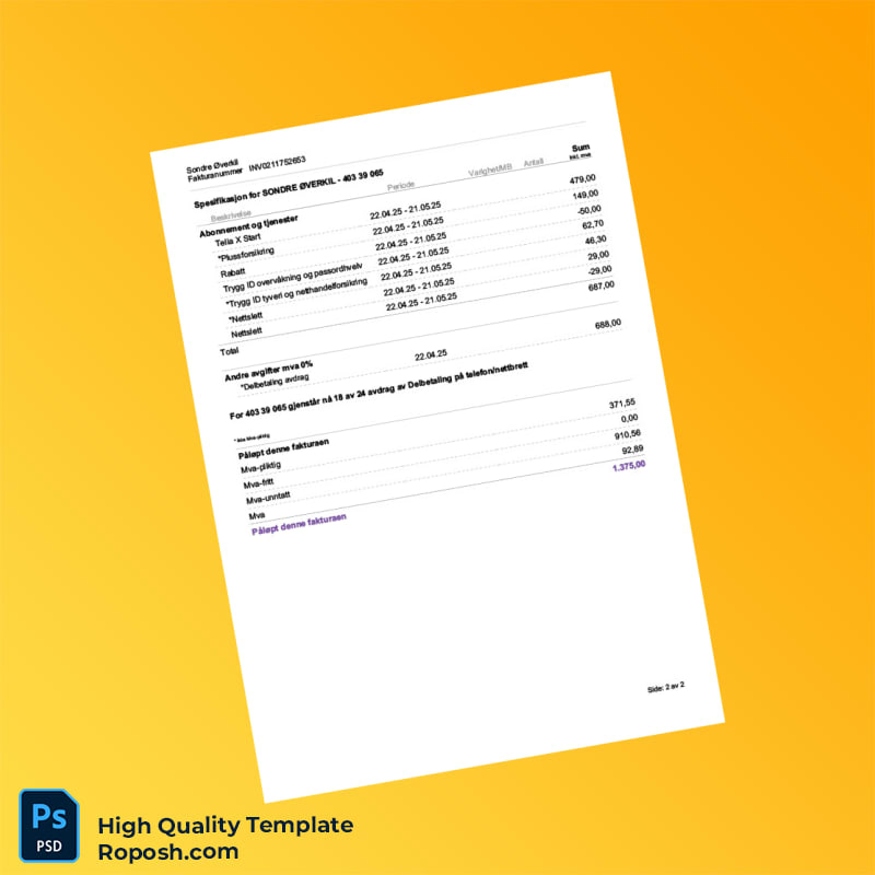The ultimate solution for professionals in need of a versatile and customizable utility bill proof of address template, the Norway Telia Norge AS Editable Phone Bill Template is your go-to resource for creating authentic, high-quality documents in minutes. Whether you’re renewing a lease, applying for services, or addressing formal requirements, this template adapts to your needs quickly and efficiently.