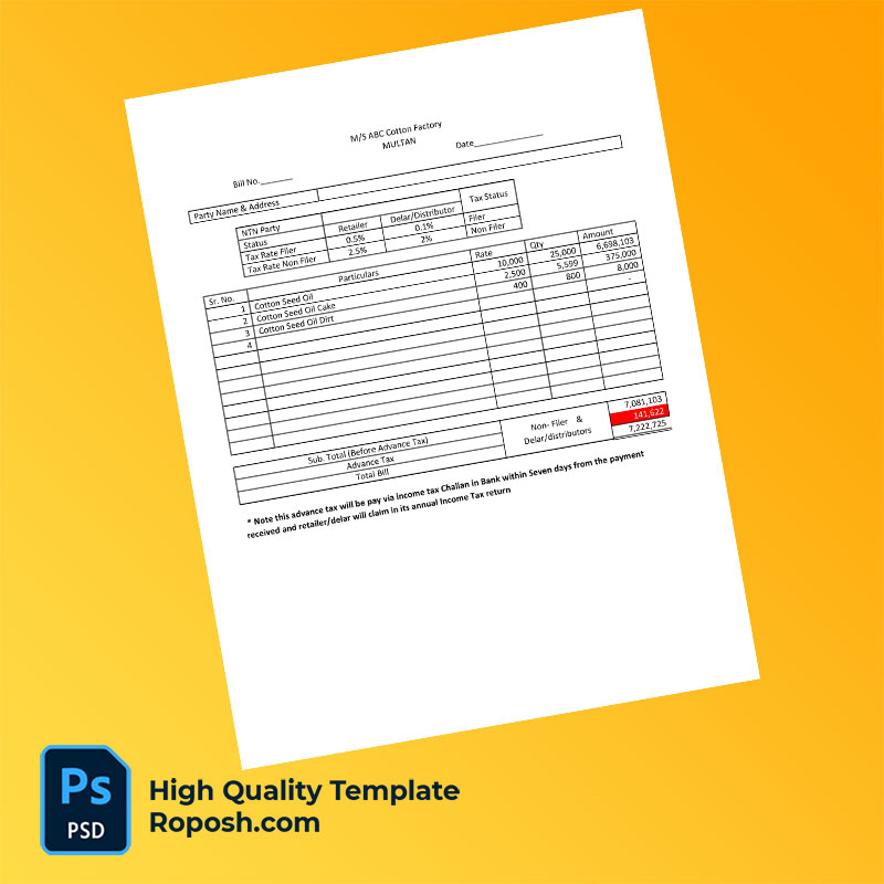 Pakistan Ahmad Cotton Industry Editable Cotton Factory Bill Template in Word and PDF formats