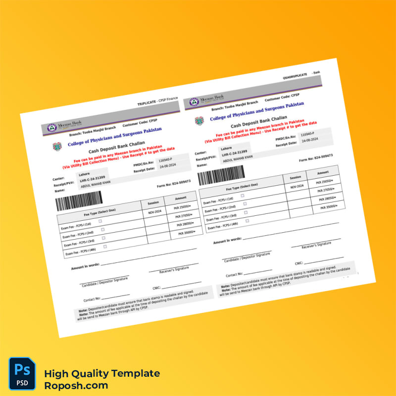 Pakistan College of Physicians and Surgeons Editable Application Template