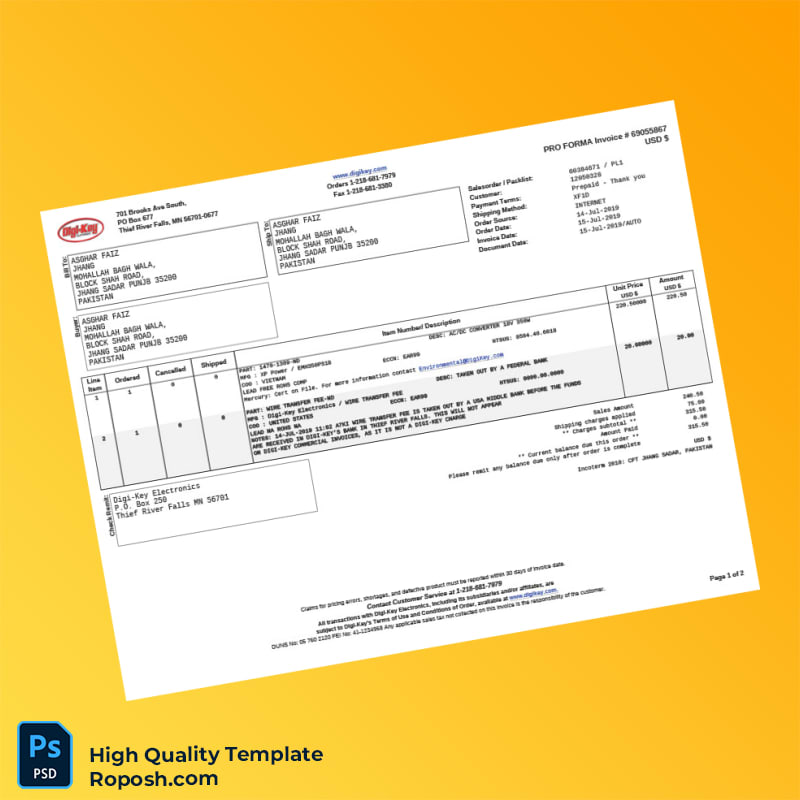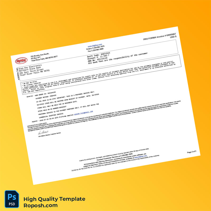 Invest in the Pakistan Digi-Key Electronics Pro Forma Invoice Template now and experience instant, effortless invoicing that supports your business growth and professionalism.