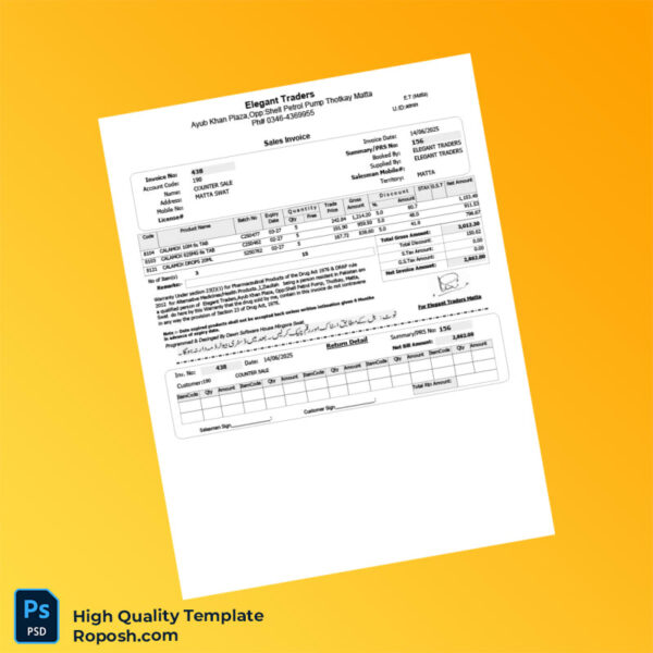 Pakistan Elegant Traders Invoice Template: Professional and Editable for Seamless Billing