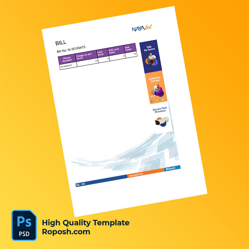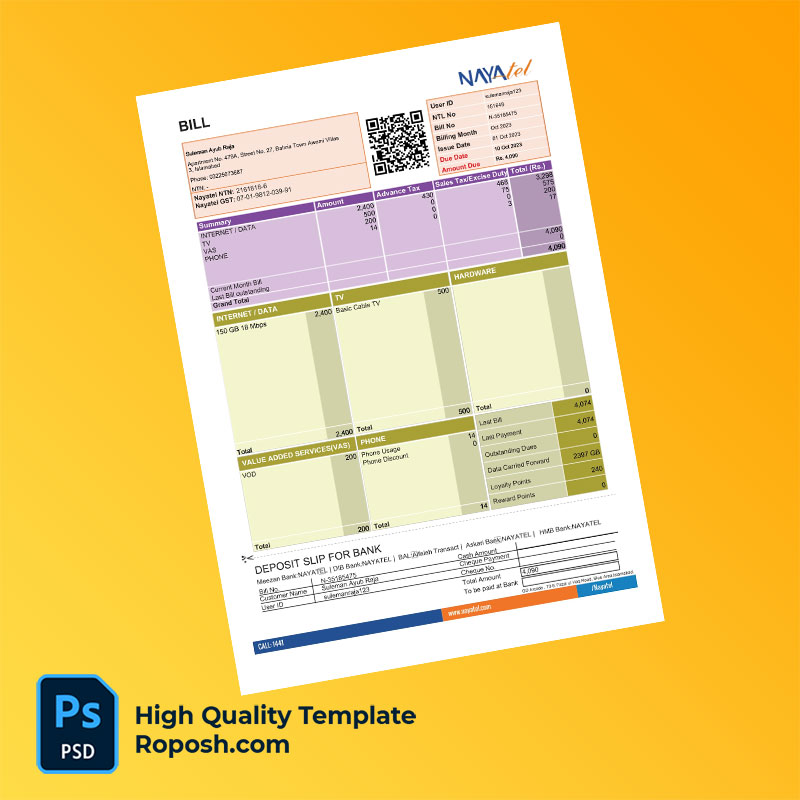 Pakistan Nayatel Editable Internet and TV Bill Template in Word and PDF formats