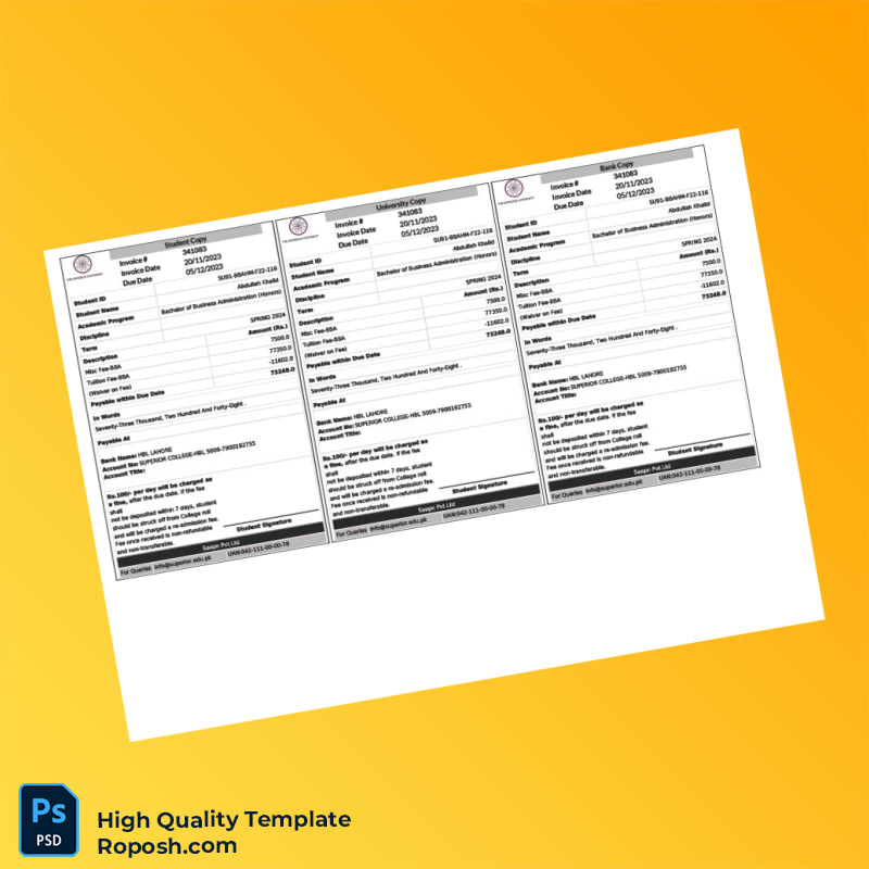 Pakistan Superior College Invoice Template in Word and PDF Formats