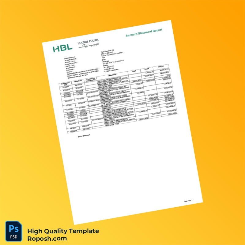 Pakistan Tapal Tea Private Limited Editable EStatement Template in Word and PDF formats