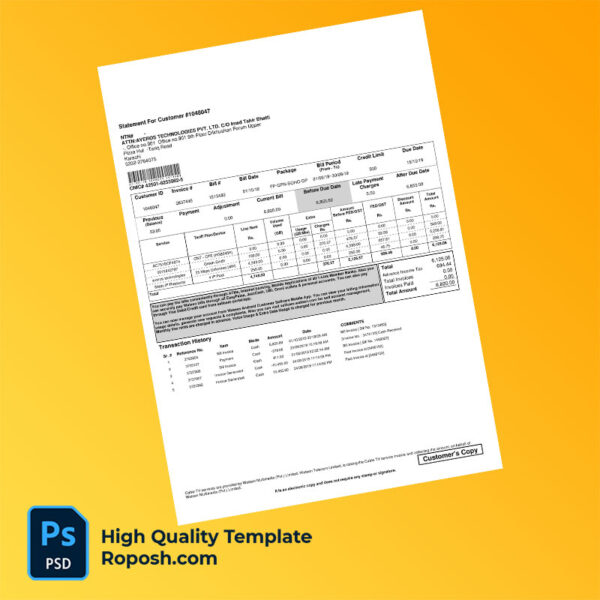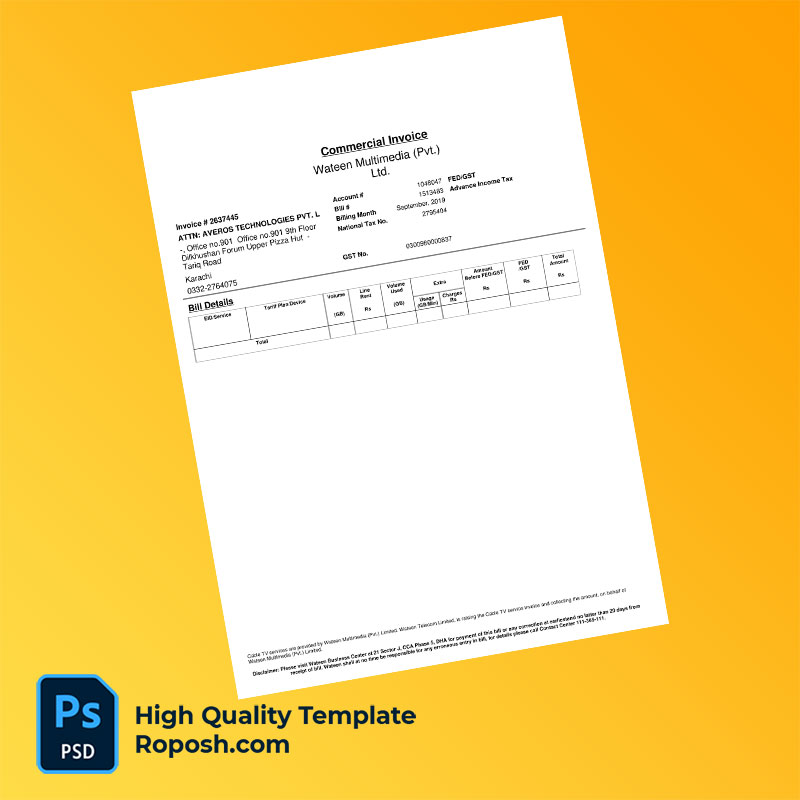 Pakistan Wateen Telecom Limited Editable Internet Bill Template in Word and PDF formats