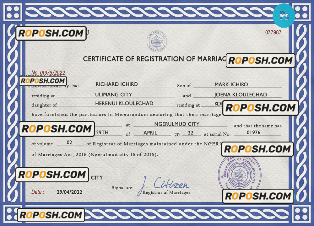 – Join our growing list of satisfied customers today by getting your hands on our blank Palau marriage paper certificates.