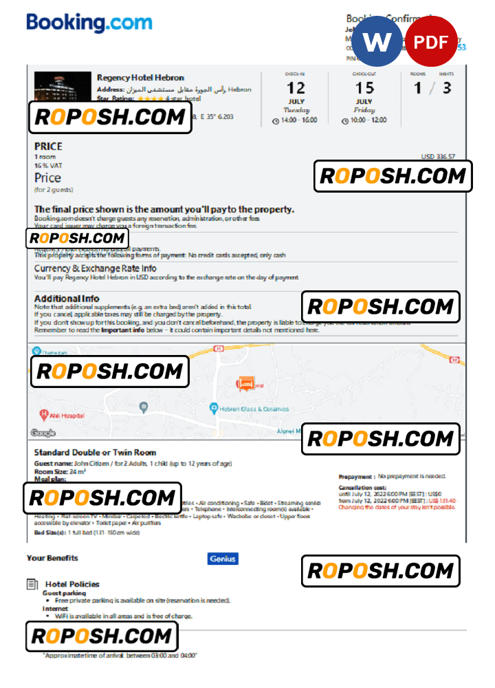 With its user-friendly design and flexible editing capabilities, this editable Palestine hotel booking confirmation hotel, room, house, and Airbnb reservation proof is the perfect choice for anyone looking to create a professional-quality editable hotel accommodation reception. So why wait?