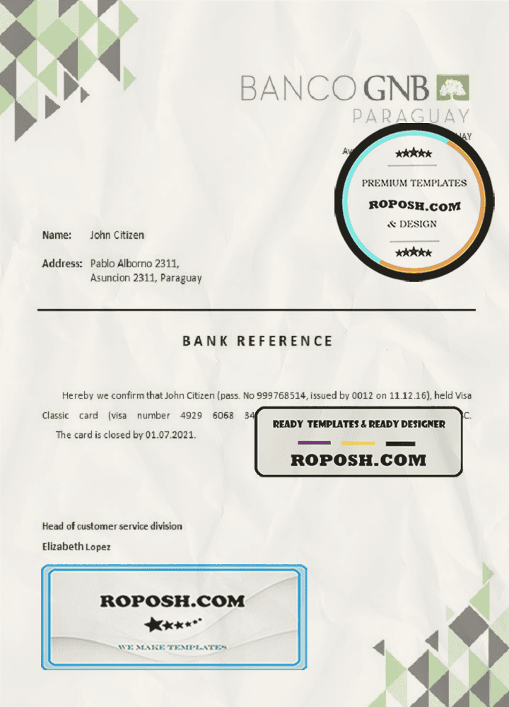 Paraguay Banco GNB bank account closure reference letter template in Word and PDF format