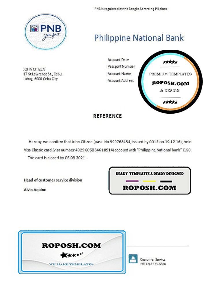 Philippines Philippine National Bank bank account closure reference letter template in Word and PDF format