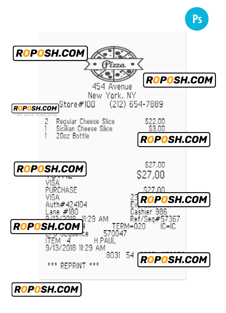 A collection of PIZZA payment receipt samples can act as proof that a transaction has been successfully completed; for your convenience, editable payments templates options come in various formats, including Word, Excel, PDF, PSD, Docs and Google Sheets. We provide store receipts’ templates for different types of usages, such as sales, rent, pharmacy, food, and donation receipts from renown markets, services, and shops. Our goal is to offer you reliable and professional design pay editable options that help you manage your finances gals.