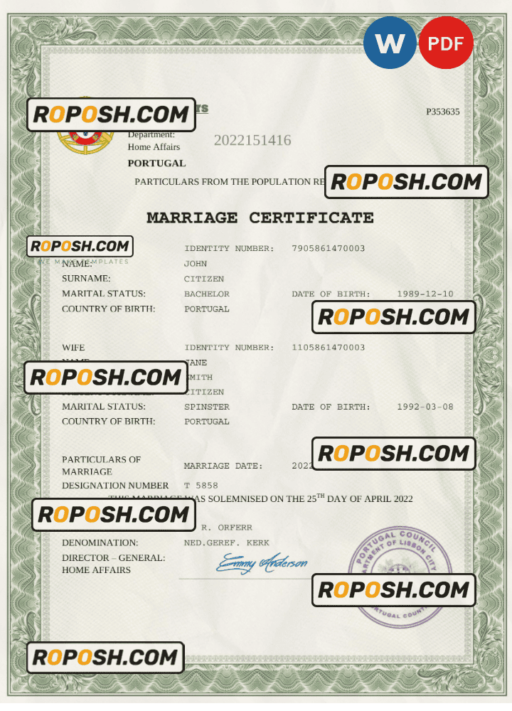 – Join our growing list of satisfied customers today by getting your hands on our blank Portugal marriage paper certificates.