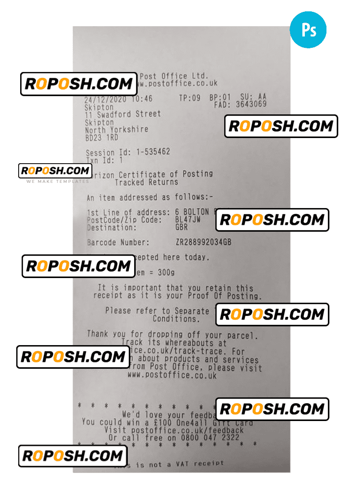 Features Editable POST OFFICE LTD Receipt PSD Template :