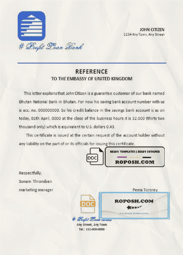 Grab now fully editable profit loan bank universal multipurpose bank account reference Word Template from our website Roposh and put your own info to create Realistic Bank Statement Word template and ready your own novelty documents. It’ll be so beneficial if your Bank Statement is expired, stolen or not available. We also have passport psd template, ID Card psd template, Bank Statement psd template, drivers license psd template & Utility bill psd template