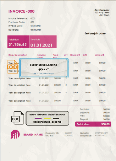 • Fully customizable Word template for creating Invoice