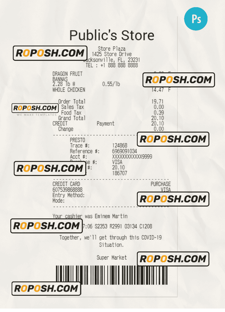 Features Editable PUBLIC’S STORE Receipt PSD Template :