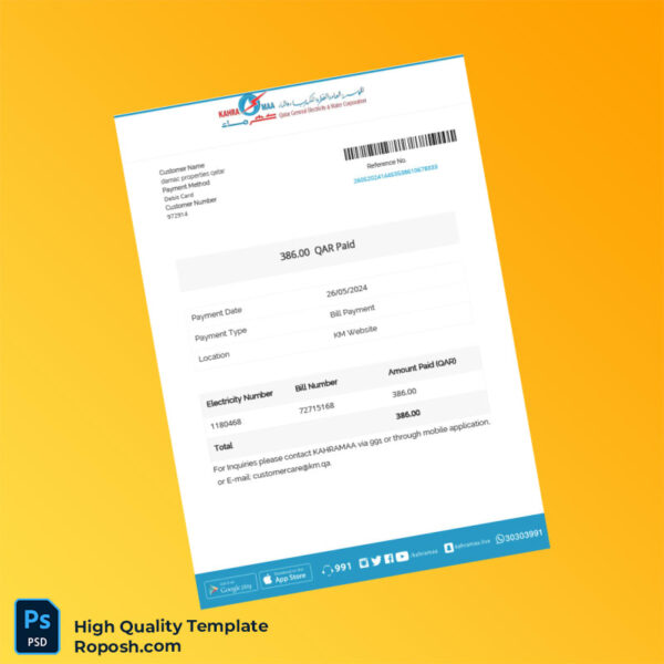 Qatar KAHRAMAA Editable Utility Bill Template in Word and PDF Formats