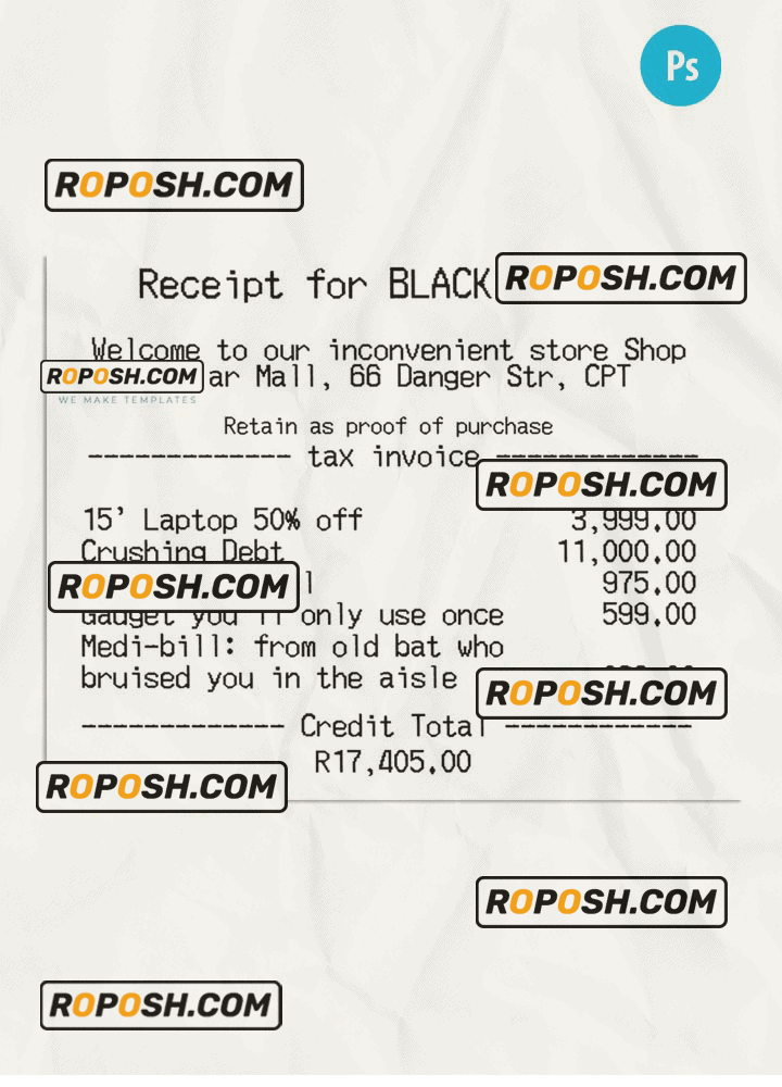 Blank RECEIPT FOR BLACK FRIDAY Receipt PSD Template :