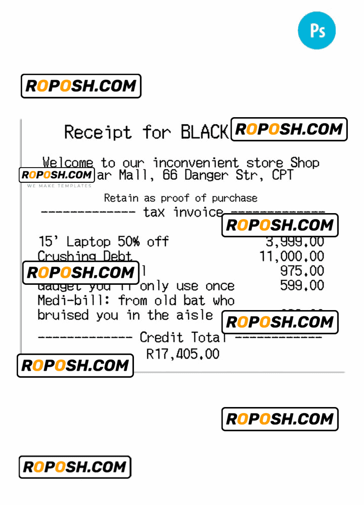 Features Editable RECEIPT FOR BLACK FRIDAY Receipt PSD Template :