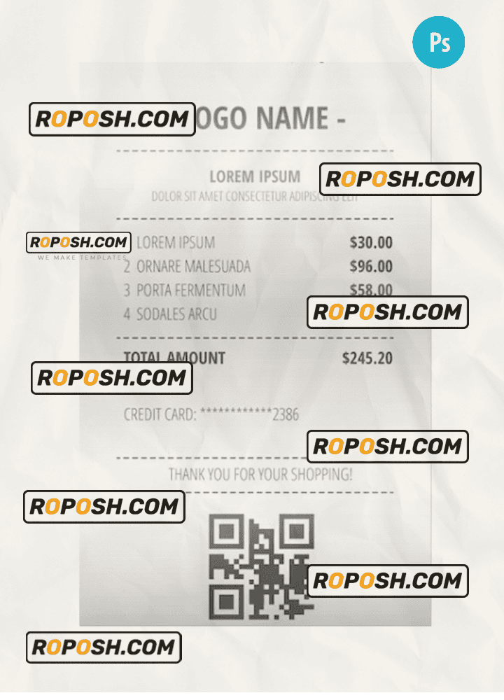 • Versatile: Our shop receipt PSD Template is suitable for a variety of verifications, and to prove your purchase.