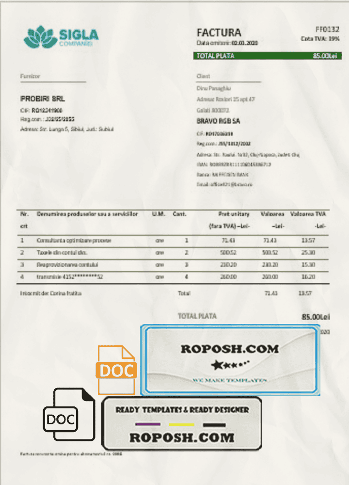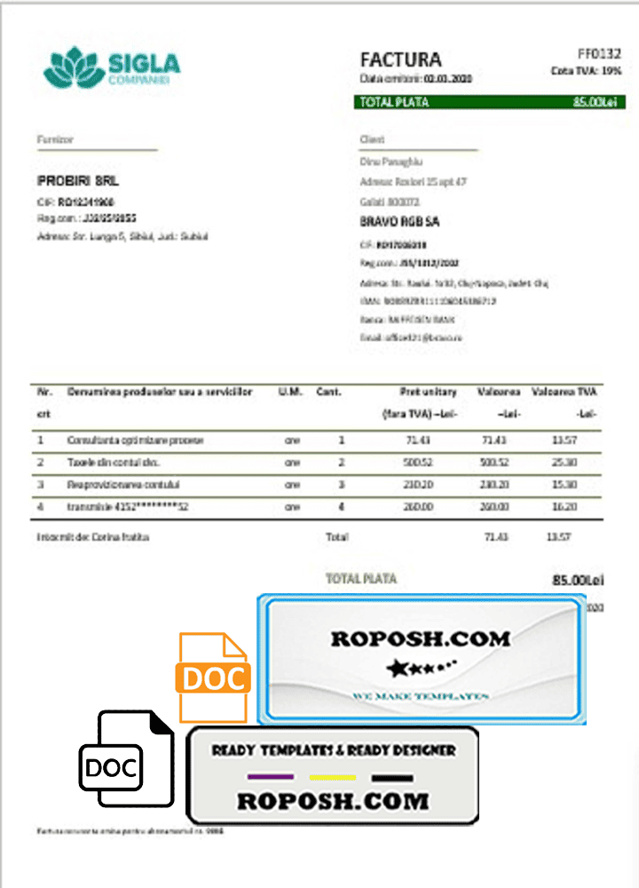 Romania SIGLA COMPANIEI Utility Bill Template – Editable Word Format