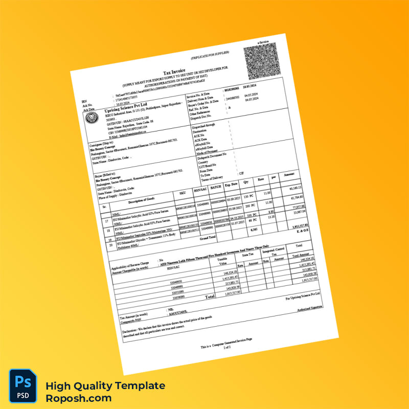 Romania Uprising Science Pvt Ltd Tax Invoice Template – Streamline Your Billing Process Effortlessly