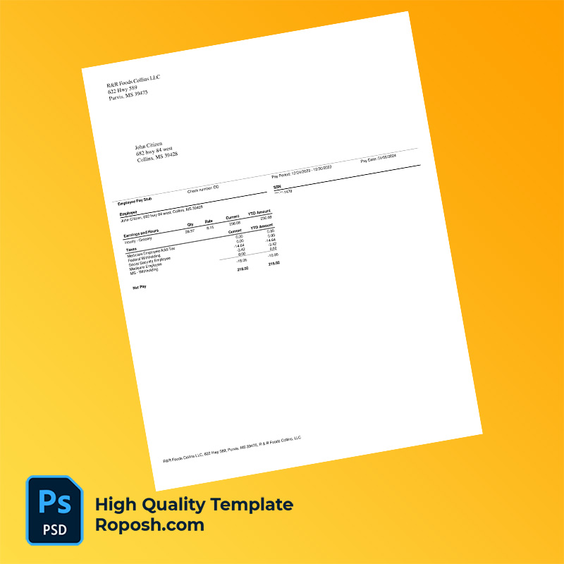 Be the first to review “R&R Foods Collins LLC pay stub word and pdf template”